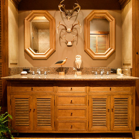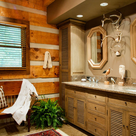 This new log home in the country outside of Nashville incorporates architectural antiques and light fixtures throughout.